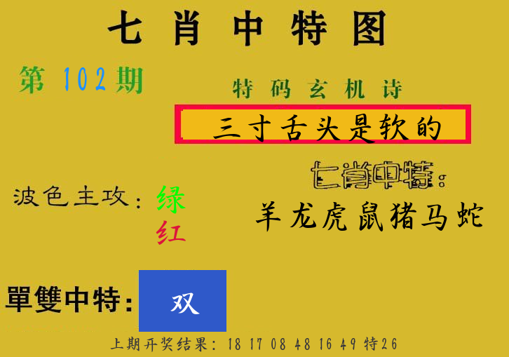 | 七肖 | 蛇虎鼠兔马狗鸡 |