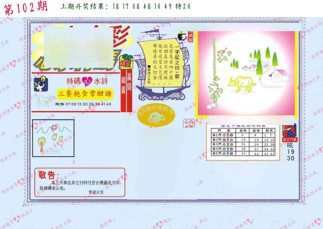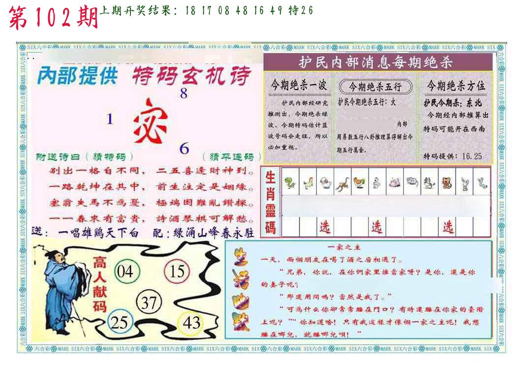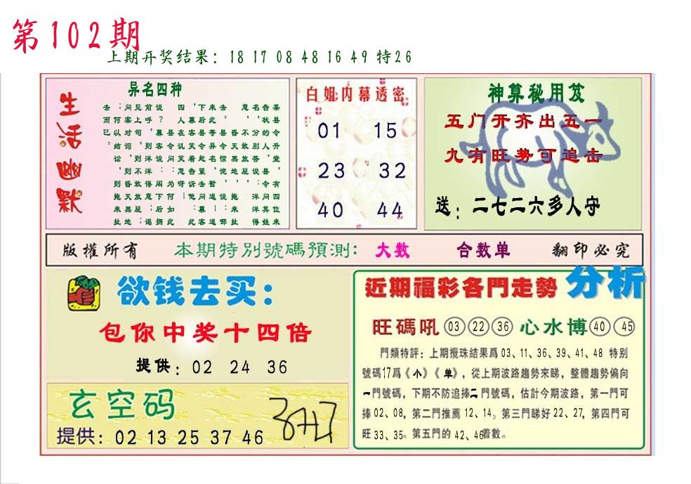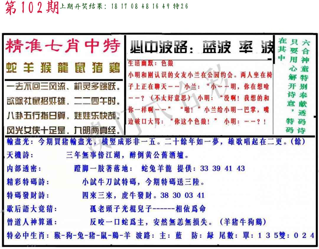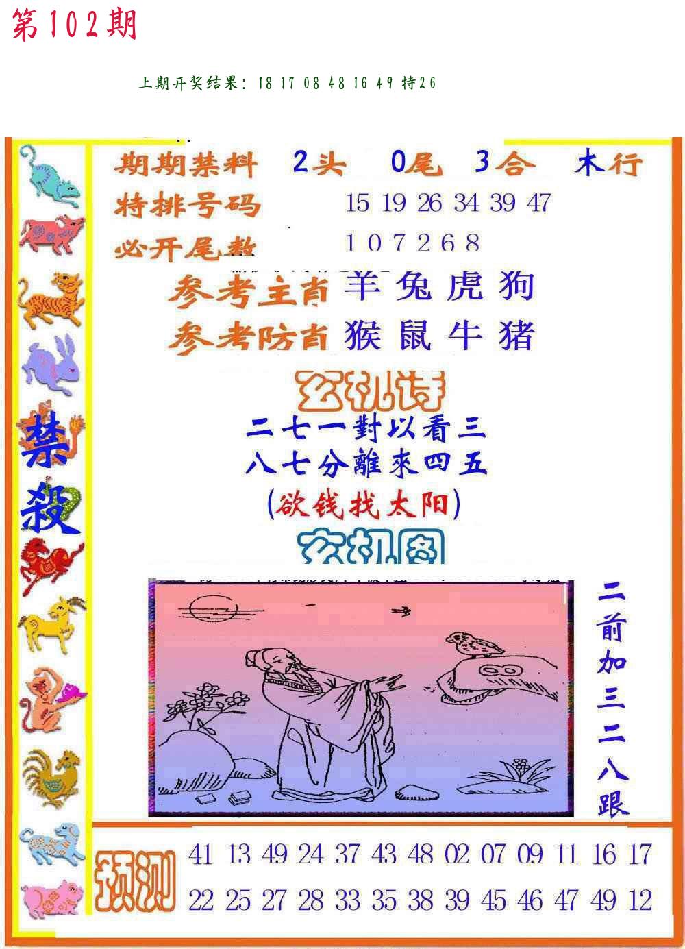 胆小【鼠兔龙蛇羊鸡】 45.30.37.38.11.02.01.27.26.23.15.49 |