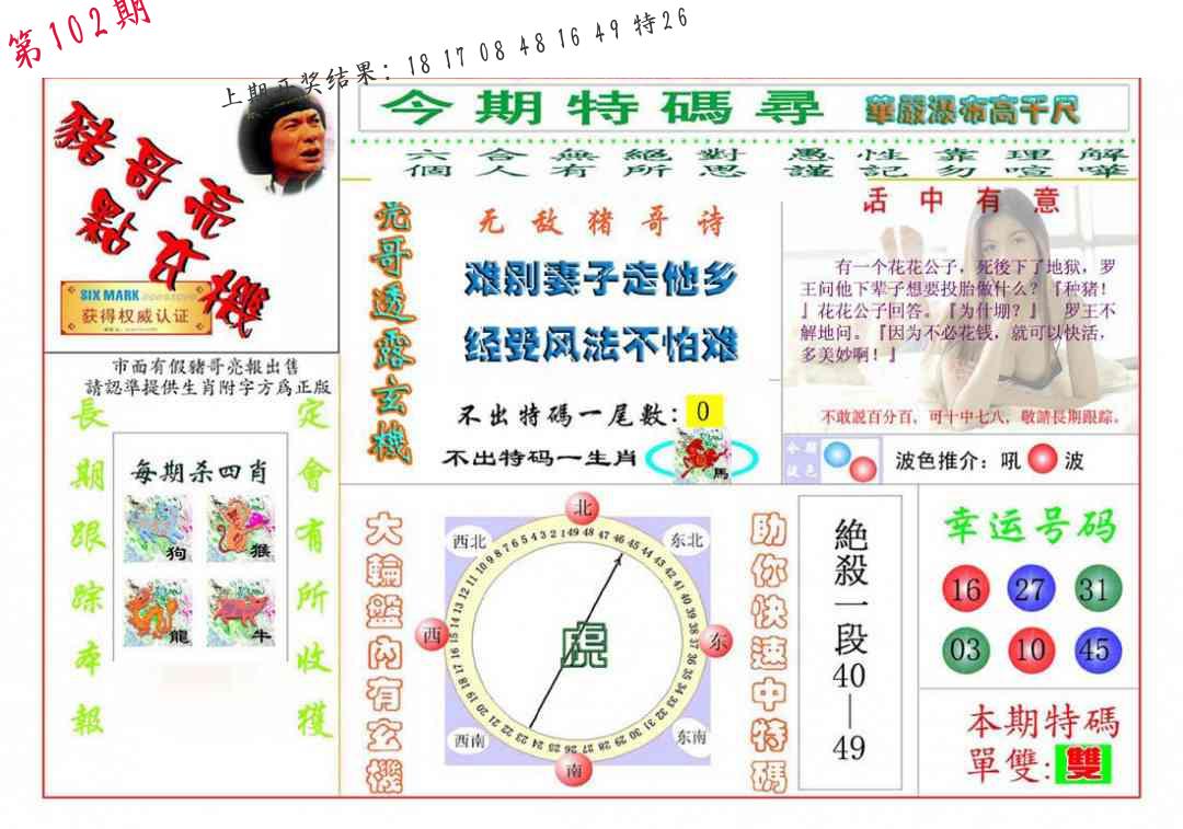 | 1227期:逼哥四尾八码 开19猪错 | |