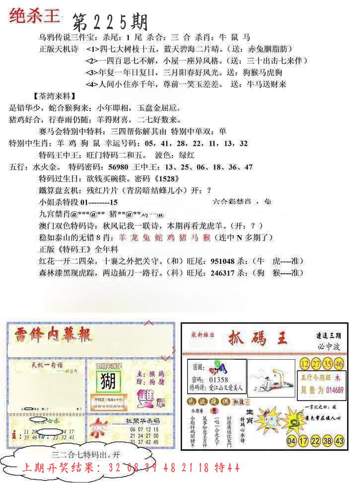 | 0218期:逼哥四尾八码 开33狗错 | |